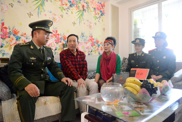 日前,盤錦公安邊防支隊(duì)官兵一行10人專程趕赴丹東,為支隊(duì)烈士劉凱父母新居添置家用,并送去新居房產(chǎn)證和3000元慰問金。