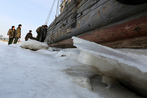 日前,營(yíng)口公安邊防支隊(duì)成立“海冰巡邏隊(duì)”,對(duì)堆積海冰的海港、碼頭開展安全巡邏,以排查海冰對(duì)停靠漁船及漁船民生活帶來的安全隱患,預(yù)防和減少漁民財(cái)物損失。