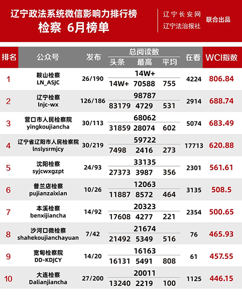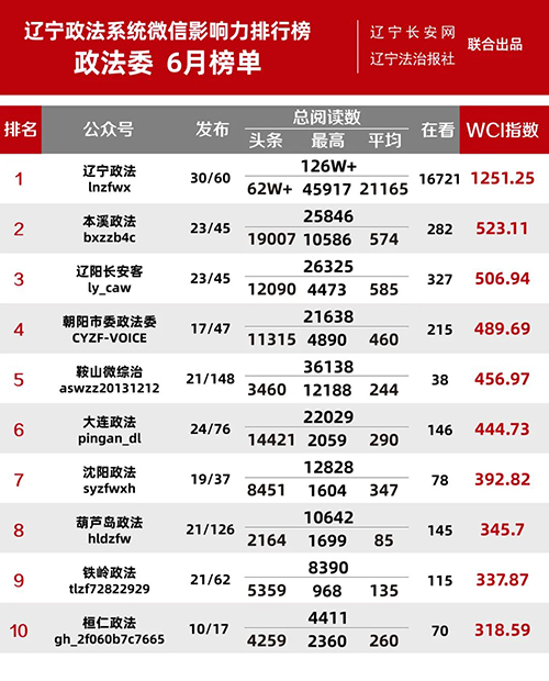 “遼寧政法系統(tǒng)微信影響力排行榜”