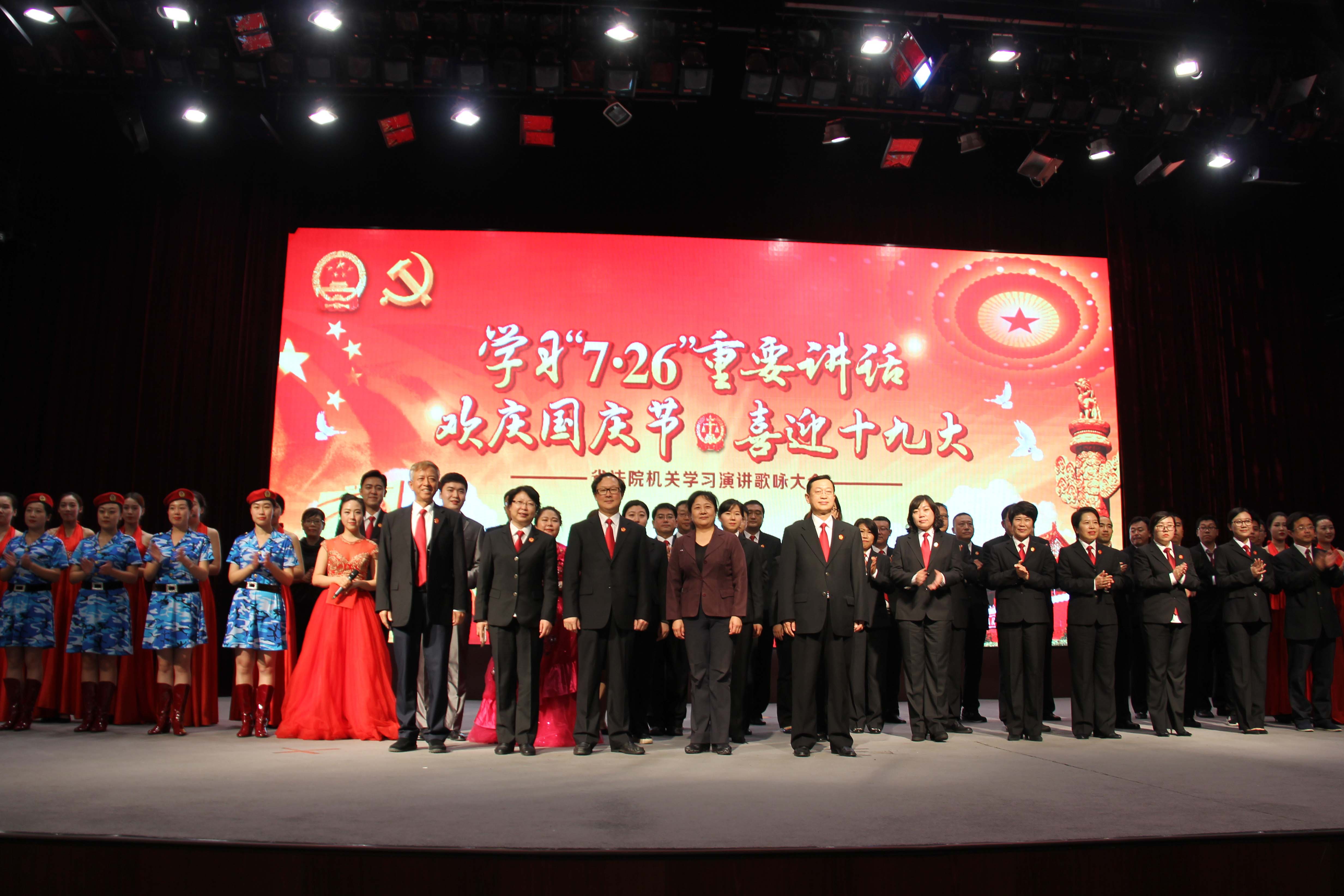 9月29日下午,省高級(jí)人民法院舉辦以學(xué)習(xí)“7·26”重要講話精神、歡慶國(guó)慶節(jié)、喜迎十九大為主題的機(jī)關(guān)學(xué)習(xí)演講歌詠大會(huì)。全院機(jī)關(guān)干警及物業(yè)人員奉獻(xiàn)了16個(gè)精彩節(jié)目,匯集演講、演唱、詩(shī)朗誦等多種表演形式,均為自編、自導(dǎo)、自演,緊扣時(shí)代主題,基調(diào)高昂奮進(jìn),氣氛熱烈。此組圖片為大會(huì)現(xiàn)場(chǎng)。